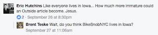 As you may also know, a high percentage of people who leave comments on Outside's Facebook page are apparently idiots. In addition to the person who stated that "there wouldn't be ANY roads without cars" (that's not just stupid, that's "holy fuck" stupid), there are also people who just plain miss the point: