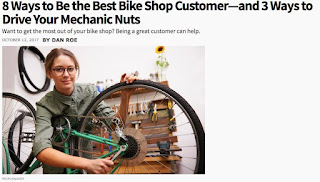 1) Even in our age of kinder, gentler bike shops, walking into one can still be a stressful proposition. Indeed, even as a "bike industry fart" myself (or at least a bike media industry fart) I still feel the same way walking into a bike shop as I do when I go to the doctor in that I know I'm about to be shamed for something;